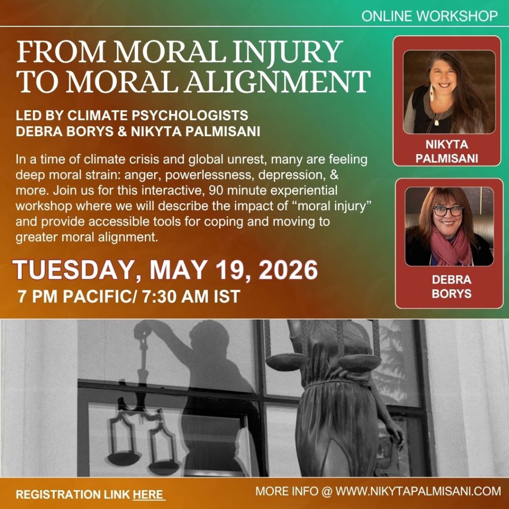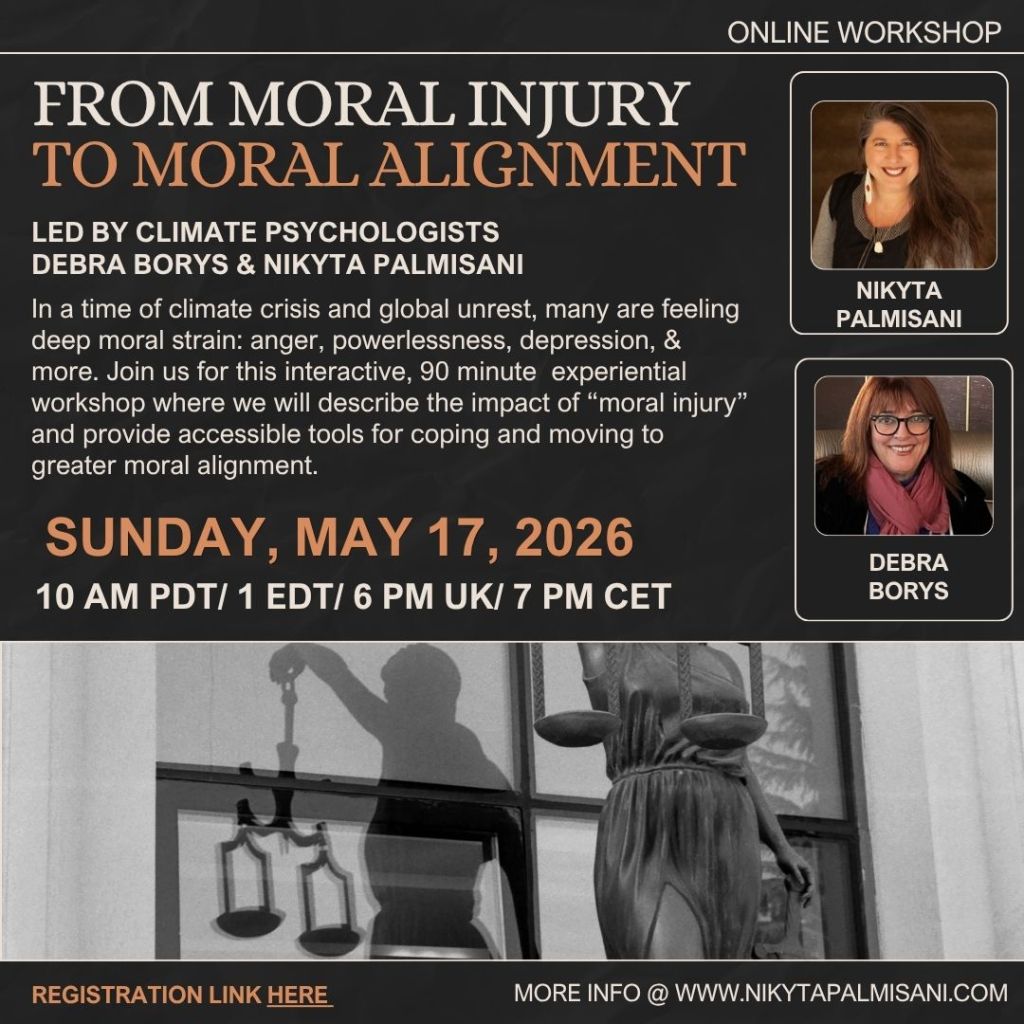 Scientists, sustainability professionals, students, activists and world citizens in general are feeling a range of emotions–demoralization, powerlessness,and worry among them–about the climate crisis, war, and authoritarianism. Government inaction, corruption, and other destructive developments are contributing to a stressful moral crisis. Join us for a welcoming, supportive program, open to all internationally, where we will describe the impact of “moral injury” and provide accessible tools for coping and moving to greater moral alignment through grounding exercises, group discussion, and other activities.